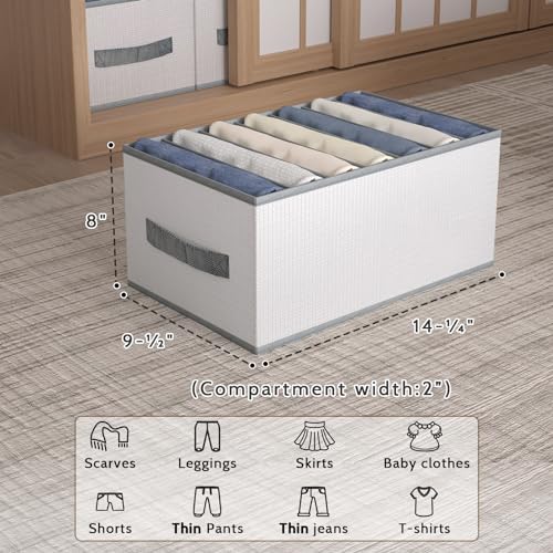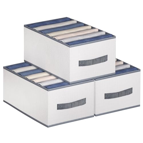 DonYeco - 3 Pack Wardrobe Clothes Organizer, 7 Grids Jeans Drawer Closet Organizers and Storage, Dimension 14-1/4" x 9-1/2"x 8" (Compartment width: 2")