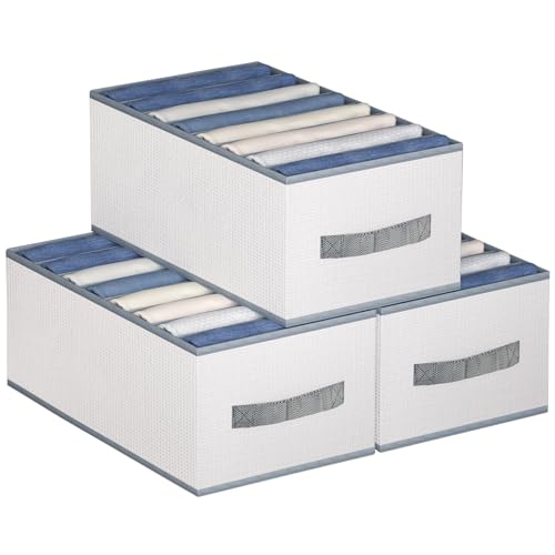 DonYeco - 3 عبوات من منظم الملابس في خزانة 8 شبكات للجينز الأبعاد 15-3-4 انش × 9-1-2 عرض الحجرة: 2 أبيض