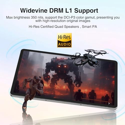 - 【High Resolution Audio & Widevine L1 Support】This tablet has 4 speakers, each equipped with a smart sound system to utilize the space and reproduce the best and clearest sound. And it is tuned to the Hi-Res Audio standard to achieve sound quality as close to natural sound as possible. In addition, T30 MAX supports Widevine L1, which can play 1080P and higher high-definition media on all video distributions.