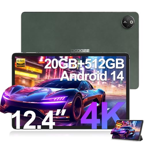 DOOGEE - DOOGEE T30 Max Tablet 12.4 Inch 4K, Android 14 Tablet, 20GB RAM + 512GB ROM (2TB TF), Helio G99 Tablets with 10800mAh Battery and 33W Fast Charging, 50MP+20MP TUV Certified, Side Fingerprint, Green