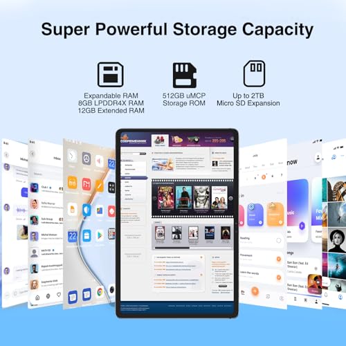 - 【8GB + 12GB RAM + 512GB ROM, Helio G99 Octa Core】 DOOGEE T30 MAX tablet adopts 8-core CPU and 6nm process, 2.2GHz main frequency to reduce power consumption and heat. When the 8GB LPDDR4X base RAM is fully loaded, 12GB of expanded RAM is enabled for faster multitasking and application switching. It also supports expandable storage capacity of up to 2TB.