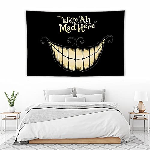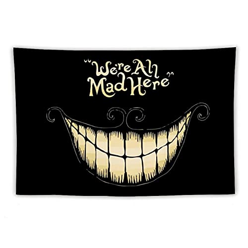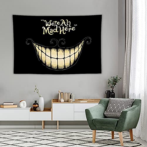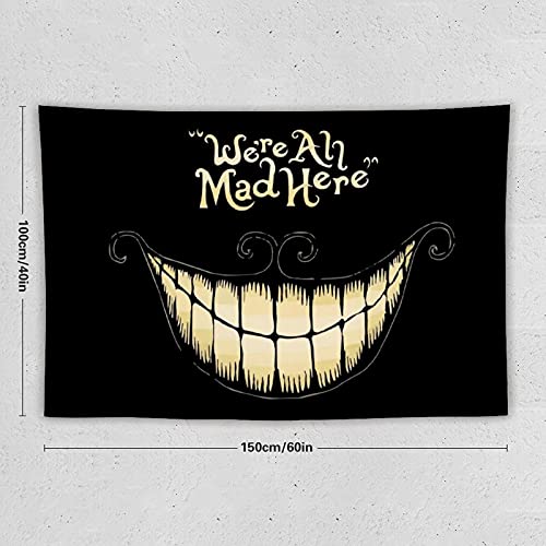Dopam Do - دوبام دو بساط حائط مزخرف جمالي للتعليق على الحائط بتصميم عبارة We're All_Mad Here، ملصقات خلفية سوداء مضحكة لديكور غرفة المعيشة وغرفة النوم والمنزل والحفلات مقاس 40 × 60 انش