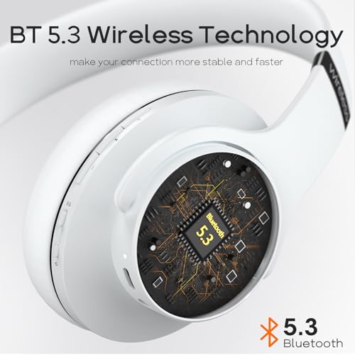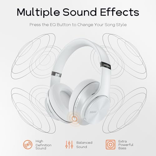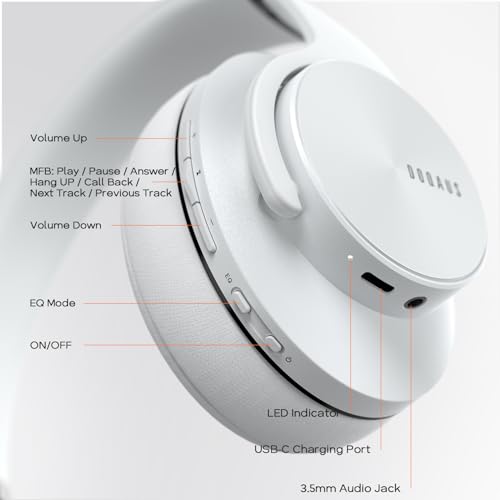 DOQAUS - DOQAUS Bluetooth Headphones Over Ear, 90 Hrs Playtime, 3 EQ Modes, Foldable HiFi Stereo Bass, Soft Ear Cups, Built-in Mic, Wired Mode for Phone/PC (White)