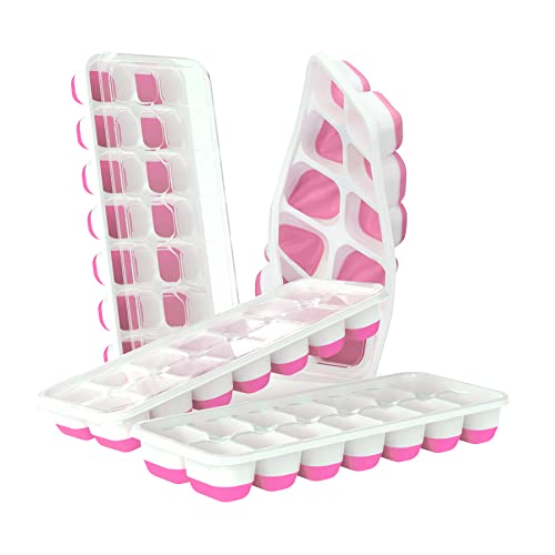 DOQAUS - DOQAUS Ice Cube Trays 4 Pack, Easy-Release Silicone & Flexible 14-Ice Cube Trays with Spill-Resistant Removable Lid, LFGB Certified and BPA Free, for Cocktail, Freezer
