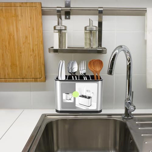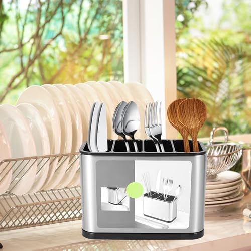 Dorclife - Kitchen Utensil Holder Stainless Steel Cutlery Organiser Cutlery Drainer Tableware Holder for Sink Countertop Cutlery Drying Holder for Spoons, Spatulas, Forks, Kitchen Organizer