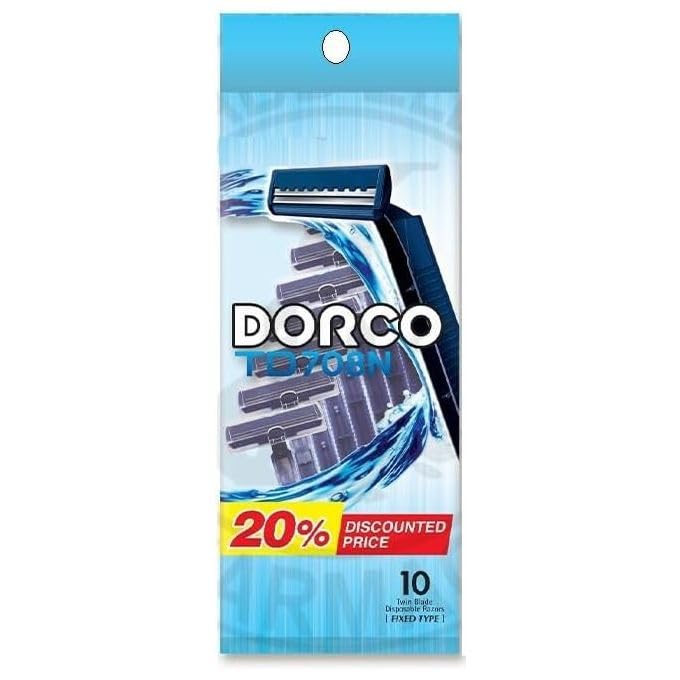 DORCO - شفرات حلاقة عادية مزدوجة للرجال 10 قطع، لون أزرق من دوركو