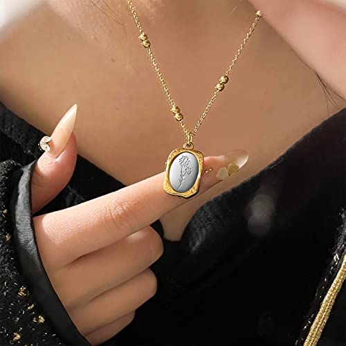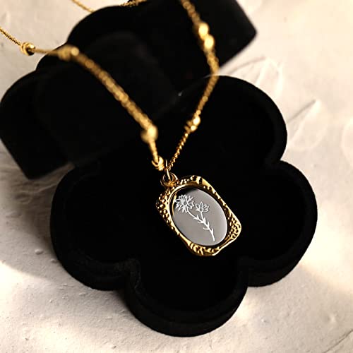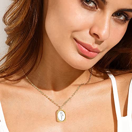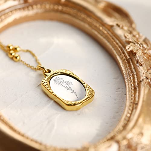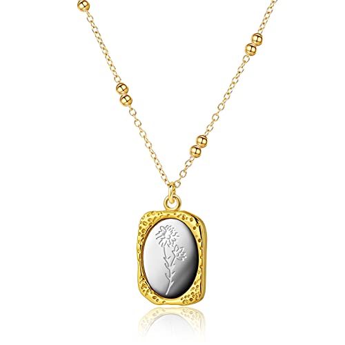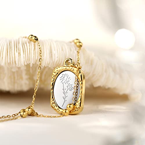 DoreenBow - سلسلة بقلادة مربعة على شكل زهرة شهر الميلاد مطلية بالذهب عيار 18 قيراط، سلاسل العملات المعدنية الرقيقة لاعياد ميلاد النساء من دورين بو, بدون أحجار كريمة
