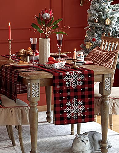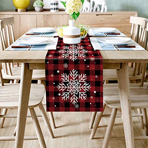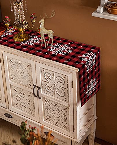 DoremiHome - Linen Burlap Table Runner Christmas Dresser Scarf Table Decorations for Everyday Use, 16x72 Inch Table Runners for Dinner Parties & Events, Xmas Snowflake Red Black Plaid