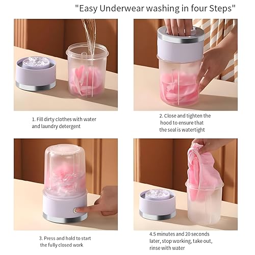 - محرك قوي بتيار مستمر 5 فولت يحرك أسطوانة سعة 1 لتر ويوفر ثلاثة برامج غسيل: سريع (دقيقة واحدة)، عادي (1 دقيقة) وقوي (3 دقائق 20 ثانية)، يغطي الملابس الداخلية والجوارب وملابس الأطفال والمناشف الصغيرة.