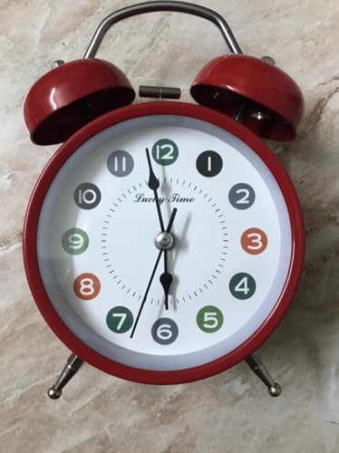 Generic - Double Bell Analog Alarm Clock, Colorful Numbers with Backlight, Quartz, Red, 10 cm