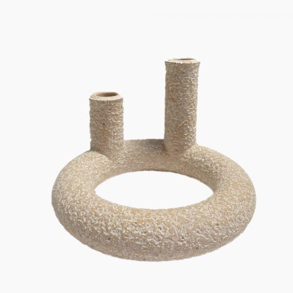 - DESIGN: Elegant ring-shaped candle holder with dual openings, featuring a unique textured stone-look finish in sophisticated beige colour