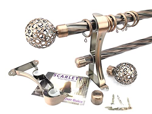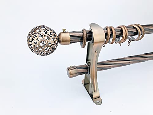 Generic - Double Curtain Rod Scarlet Double Curtain Drape Pipe Easy Installation Double Curtain Hanging Kit All Part Inclusive Ball Decor (Fits 105cm to 63cm Window Width, Dark Rose Copper)