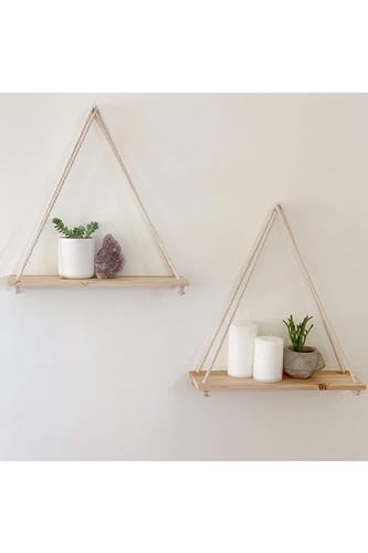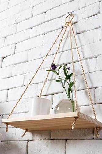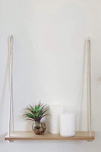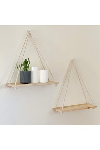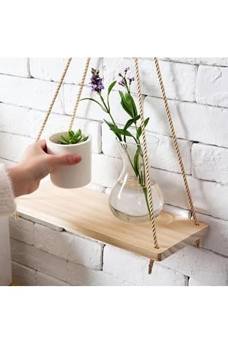 alyones - Double Decorative Wooden Bookshelf Wall Shelf Flying Shelf with Wooden Rope