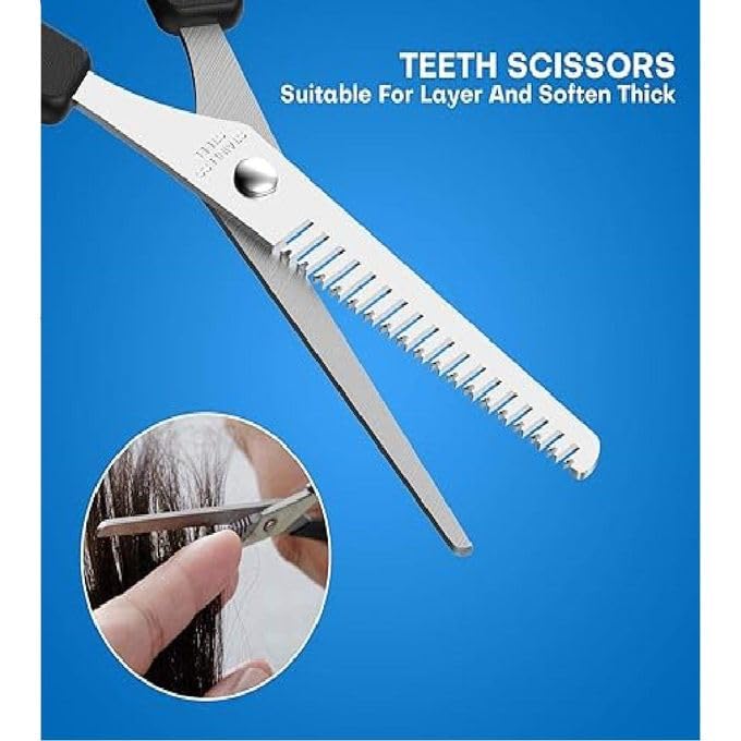 - VERSATILE - With a length of 16 cm, the Professional Razor Edge Hair Thinning Scissor is safe and easy to use on men, women, the elderly, children, and babies! With a sleek stainless steel texture, our scissor reduces messy hair clutters as no hair gets caught in between its thinning blades, unlike other hair thinning scissors on the market