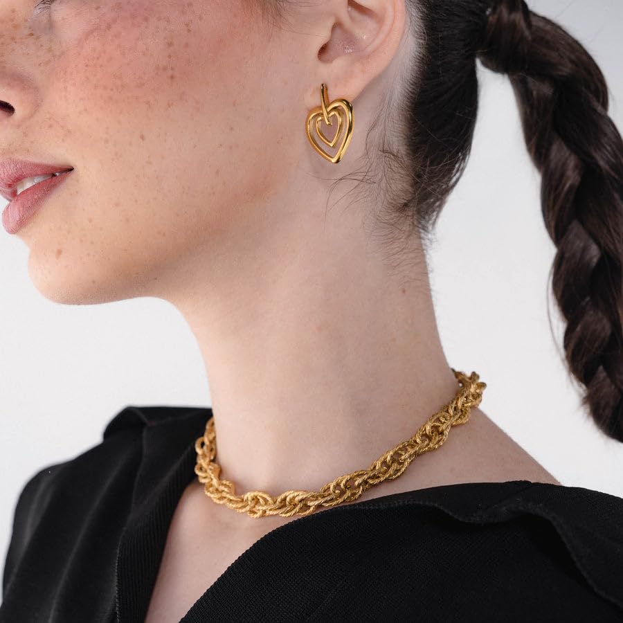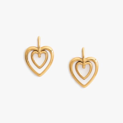 Generic - اقراط متدلية على شكل قلب مزدوج، مطلية بالذهب، تصميم هندسي