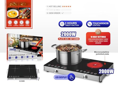 Generic - Double Infrared Electric Stove – Each Eye 2000W (Total 4000W) – Heat Resistant Glass Top – Touch & Knob Control – 10 Heat Levels – Smart Timer & Heat Protection – 12 Months Warranty