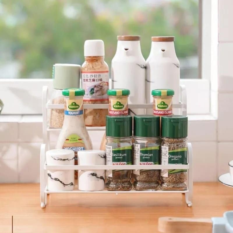 - It has two handy shelves that help you organize all your kitchen necessities, including seasonings, tins, and toiletries.