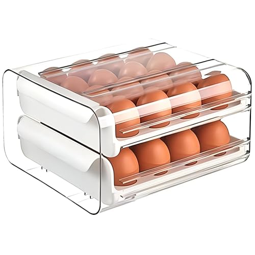 - Constructed with a double-layered design, this egg container offers enhanced protection for your eggs. The two-tier structure allows for optimal storage capacity while minimizing the risk of breakage, making it an ideal choice for households with multiple egg users.