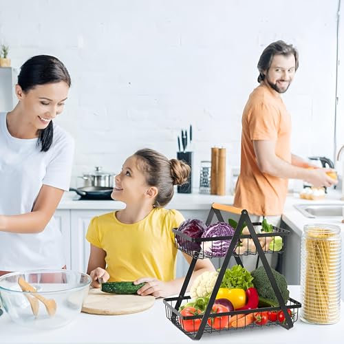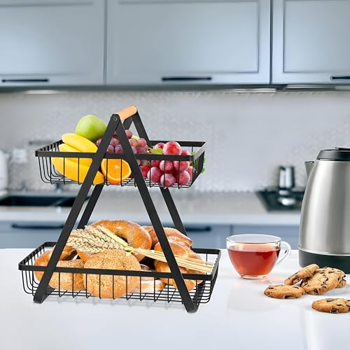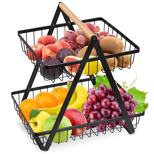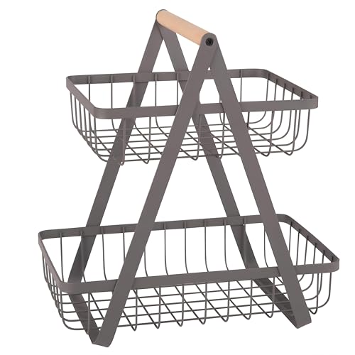 - Designed for kitchen use, this two-tier fruit basket offers a stylish and practical way to store and display a variety of fruits. Its multi-layer construction allows for easy access and increases worksurface space, making it the perfect addition to any kitchen.