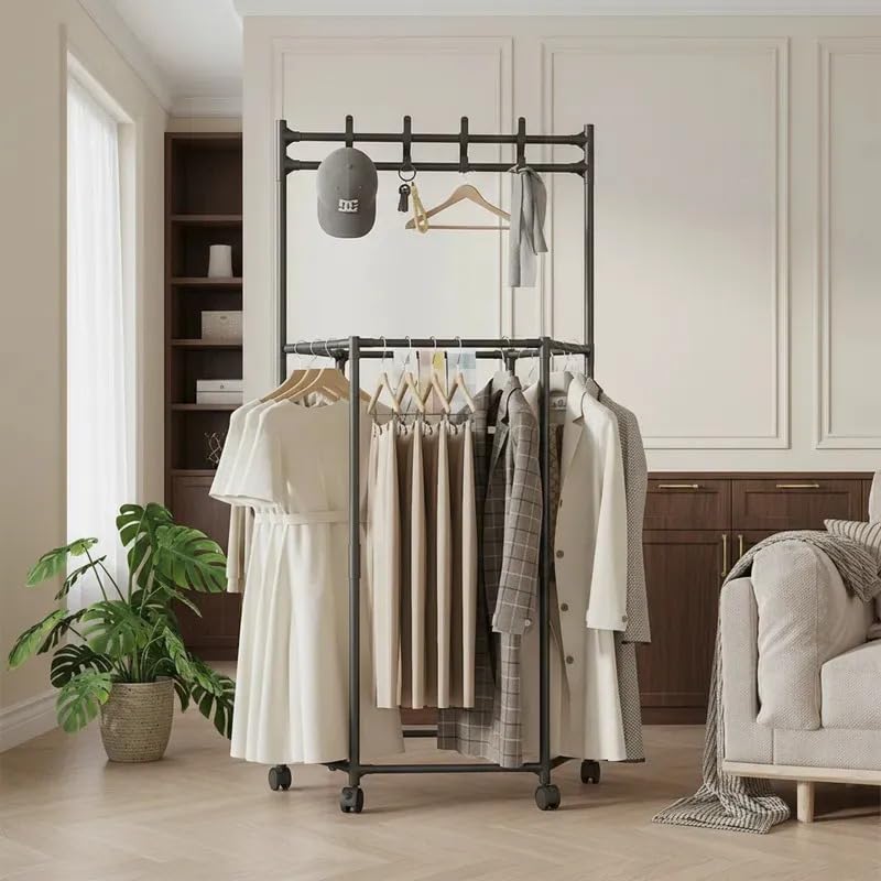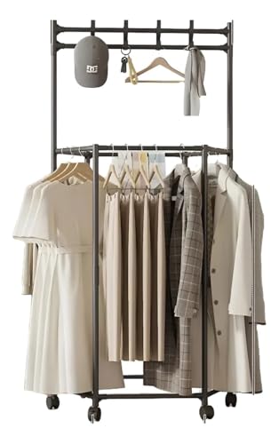 Generic - Double Rail Rolling Clothes Stand – Heavy Duty Metal Garment Rack with Wheels, Modern Open Design for Organizing Clothes and Coats, Space-Saving Storage for Bedroom (black)