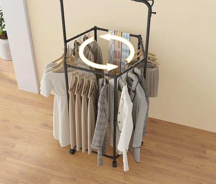 - Double Rail Design provides extra hanging space for clothes, coats, and garments