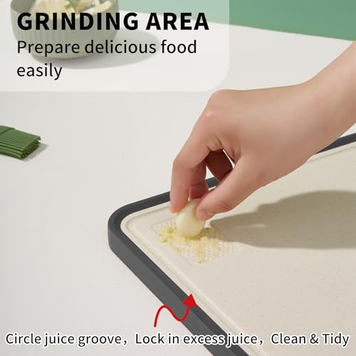 - 🧄【توفير وقت الطهي】المقاس: 40 سم (طول) × 30 سم (عرض) × 1.7 سم (ارتفاع)، يتضمن أخدود مدمج للسوائل ومساحة للفرم، حيث يمكن للأخدود العميق التقاط اللحوم والفاكهة وعصير الخضروات بفعالية دون انسكاب أو فوضى على طاولة المطبخ. مساحة مخصصة لفرم الثوم والزنجبيل مما يوفر وقت الطهي، ويتيح لك لوح التقطيع الحفاظ على طاولة المطبخ نظيفة ومنظمة حتى في أوقات الطهي الأكثر ازدحامًا.