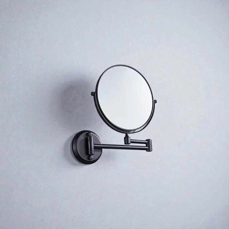 Generic - مراة مكبرة مزدوجة الجوانب - تكبير مرتين ومرآة عادية - مقاومة للصدا (اسود)