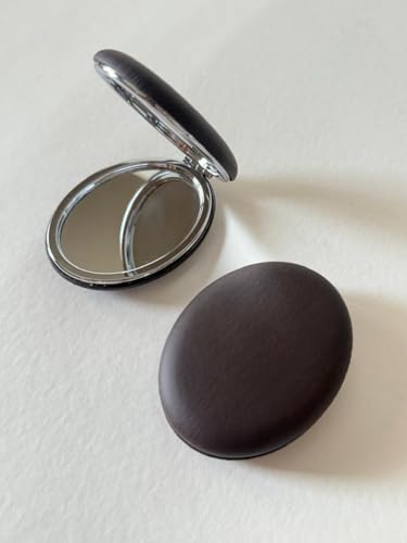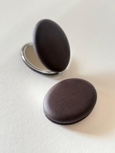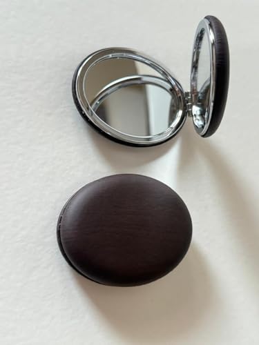 Generic - Double-Sided Oval Folding Cosmetic Mirror, Cork Frame, 1X/2X Magnification, Compact Travel Pocket Mirror 6.5 X 9 Cm (Dark Brown)