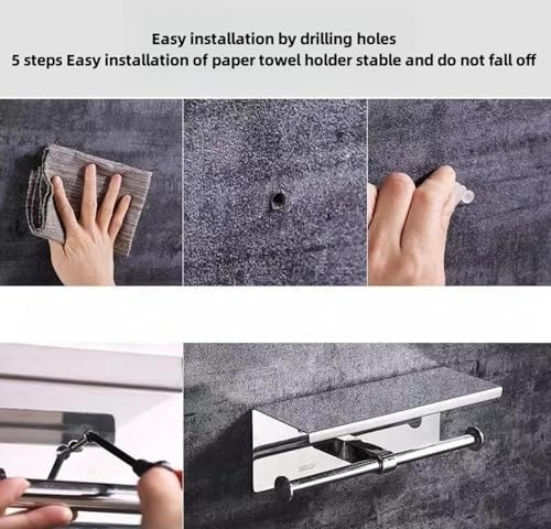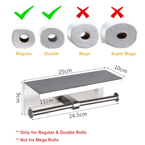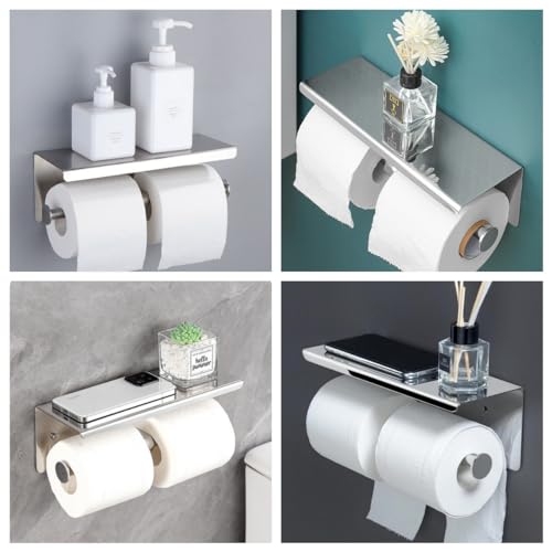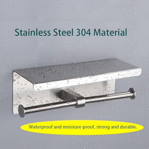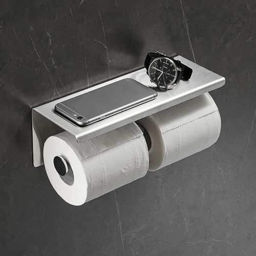 - Double Toilet Paper Holder with Phone Shelf Dual Roll Tissue Holder Dispenser Wall Mounted SUS304 Commercial Stainless Steel Roll Holder Storage Cool Bathroom Accessory (Silver)