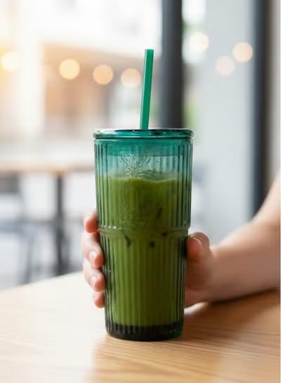 Generic - Double Wall Glass Mug with Lid and Straw 600ml for Iced Coffee, Smoothies, Cocktails, Home and Travel Use (Emerald Green)
