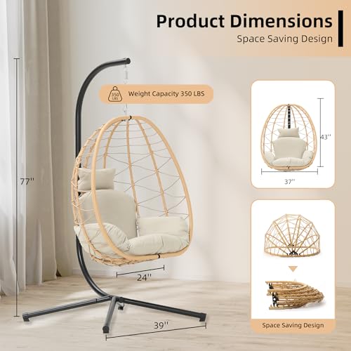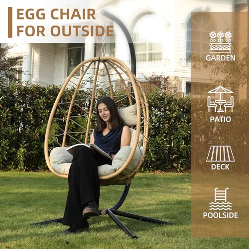 DoubleTT - كرسي أرجوحة بيضوي مع حامل، متأرجح ومعلق بشكل سلة عش، وسائد قابلة للإزالة والغسل مقاومة للأشعة فوق البنفسجية، سعة 158 كجم لغرفة النوم والشرفة والحديقة من دبل تي تي