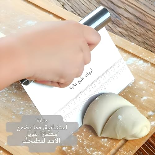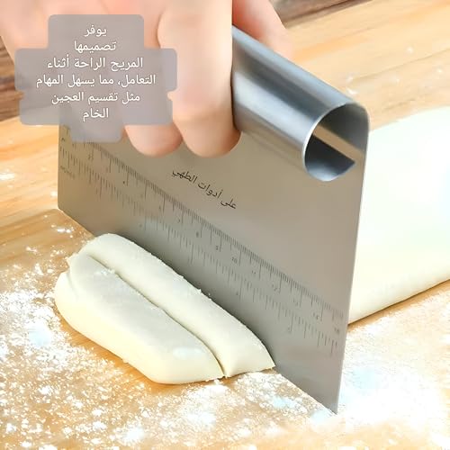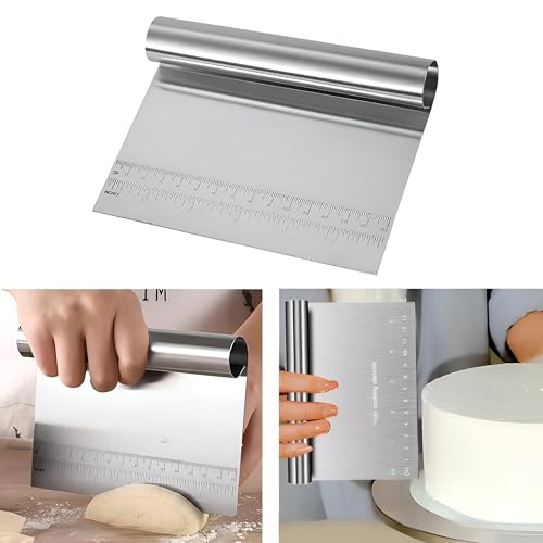 - This versatile tool excels in several kitchen tasks, from cutting and dividing doughs and pastries to precisely measuring ingredients. Its stainless steel construction speaks durability and hygiene, offering a long-lasting and easily sanitized kitchen companion, and integrated measuring guide adds practicality to food preparation. Whether you are a home cooking enthusiast or a professional chef , this spatula will quickly become indispensable in your kitchen, allowing for efficiency and accuracy