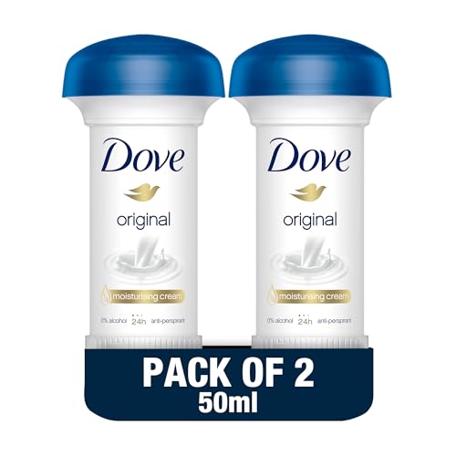 Dove - Dove Women Antiperspirant Deodorant Cream, for 24H Protection, Original, Alcohol Free with ¼ Moisturising Cream, 50ml, Pack of 2