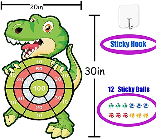 DQMOON - لوحة رمي كرات بشكل ديناصور، للأطفال من عمر 3 إلى 12، قياس 76 سم، للأماكن الداخلية والخارجية، مع 12 كرة، ألعاب حفلات وهدايا عيد الكريسماس للأطفال، من دي كيو مون