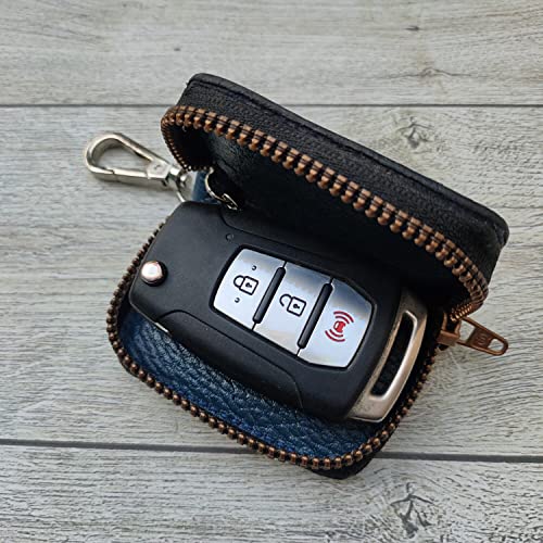 dr.key - جراب ريموت سيارة بصمة جلد طبيعي محبب موديل 1042 من Dr.Key (كحلي)