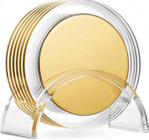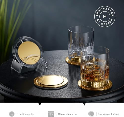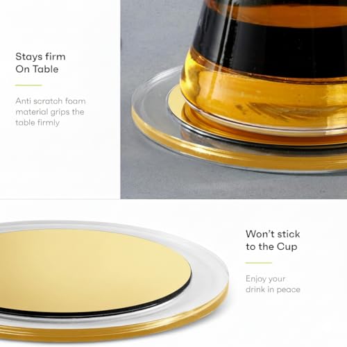 dr.key - Dr.KEY Acrylic Drink Coasters Set of 6 | Premium Stylish gold mirror 4 Inch Coaster Set for Tabletop Protection | Our Coasters WillNot Scratch Your Tables or Stick to Glass | Beautiful Home Decor gold