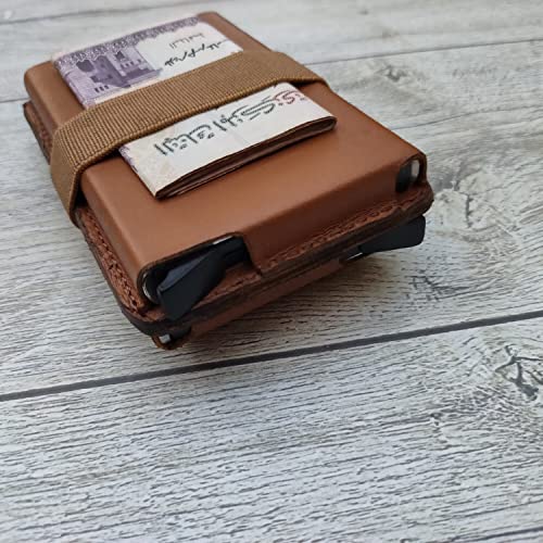 dr.key - محفظة من در.كي مصنوعة من الألومنيوم والجلد الطبيعي للجنسين، بتصميم عصري بسيط باللون الكاميل، مع خاصية حماية RFID