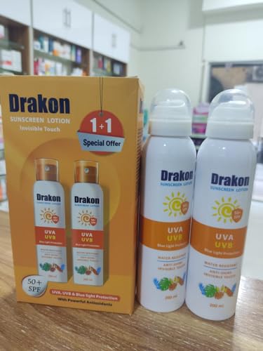 GENERIC - Dra-kon Sunscreen Lotion Dry touch SPF 50+ UVA & UVB | Water Resistant & Antioxidant for All Skin Types (1+1) Promopack - 200 ml+200 ml