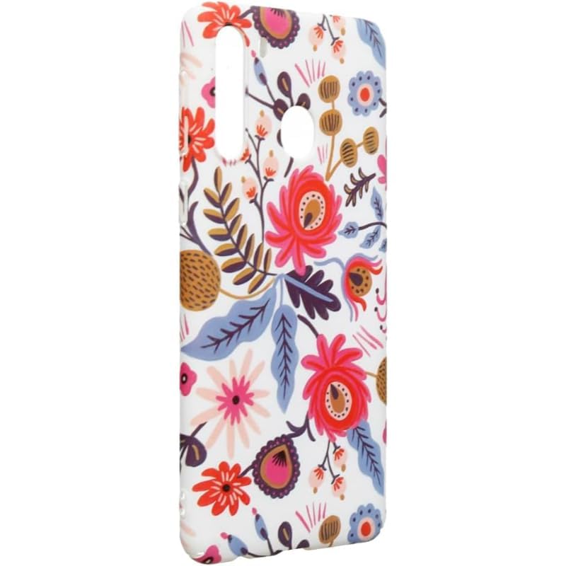 Dragon - Dragon Back Phone Protection Case Flowers Print Design With Silicone Safety Edges And 3D Back Print For Samsung Galaxy A21 - Multi Color