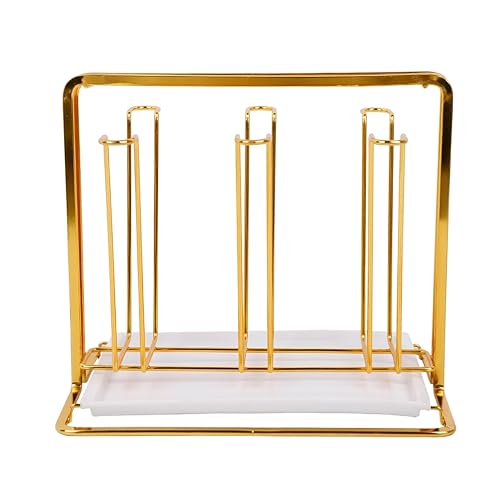 Generic - Drain Tray Stand - Golden iron wine glass holder with 6 positions, sleek design for clutter-free kitchen countertops.