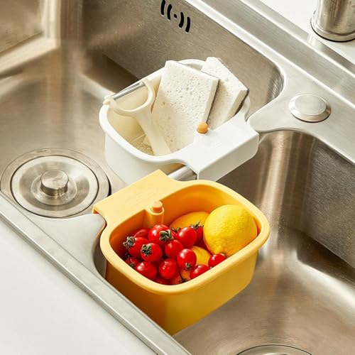 Generic - Drainage Kitchen Caddy - Yellow storage basket with sponge holder and divider, designed to keep sink area clean, dry, and organized with optimal space utilization.