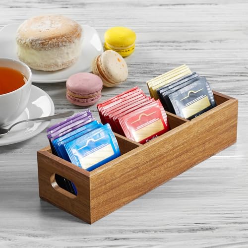 DRASTAR - DRASTAR Acacia Wood Tea Bag Organizer, 3-Slot Tea Storage Chest with Handles, Wooden Sugar Packet Holder, Mini Tea Caddy Box for Countertop