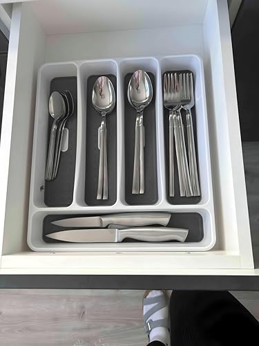 - Designed for safety and stability, the silicone organizer's non-slip construction prevents shifting during drawer operation, while the five-section layout keeps knives, forks, and spoons separated for quicker access, neater presentation, and reduced clutter in any environment.