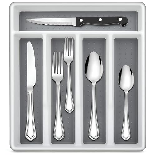 - Beyond flatware, this versatile tray organizes desk supplies, cosmetics, or snacks, thanks to its spacious compartments and padded silicone liners that cushion items and protect them during daily use; it can live in kitchen drawers, pantry shelves, or buffet tables to simplify storage and maintain a tidy space.