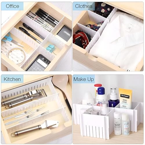 - Wide Range of Uses: These dividers are ideal for organizing drawers and storage spaces in your kitchen, office, bathroom, bedroom, or closet. They work great for office supplies, school materials, kitchen utensils, cosmetics, and more.