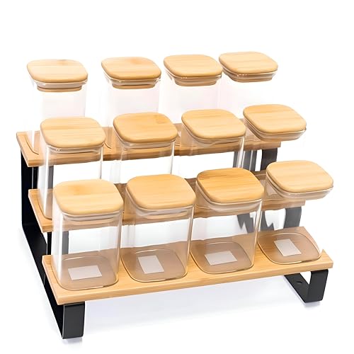 generic - Drawer Shelving - Wood drawer shelving unit with integrated spice slots in a stair-step pattern, offering sturdy construction and a bold multicolor finish.