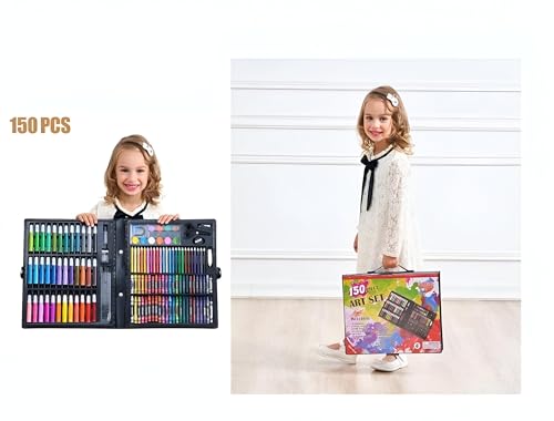 Generic - أدوات رسم للأطفال مكونة من ألوان مائية وألوان خشب وصمغ وشنطة تخزين آمنة لتعزيز مهارات الإبداع لدي الأطفال، 150 قطعة