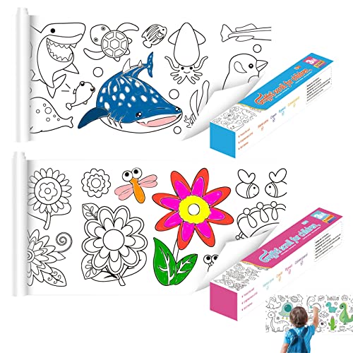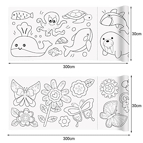 Fengaim - Drawing Paper Roll for Children, 2 Pieces 300 x 30 cm Sticky Drawing Roll Paper, Colouring Paper Roll, DIY Painting, Colour Filling Paper, Art Paper, Craft, Early Educational Drawing Book for