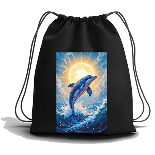 Generic - Drawstring Backpack with Dolphin Ocean Art Print, Black Tote Bag