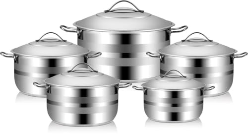 Dream - Dream 32-18 Stainless Steel Cooking Pot Set 10-Pieces, Silver